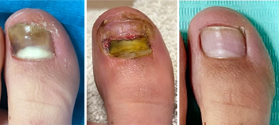 mentre in circa 14 giorni l’unghia appare più chiara, compatta e completamente rigenerata.